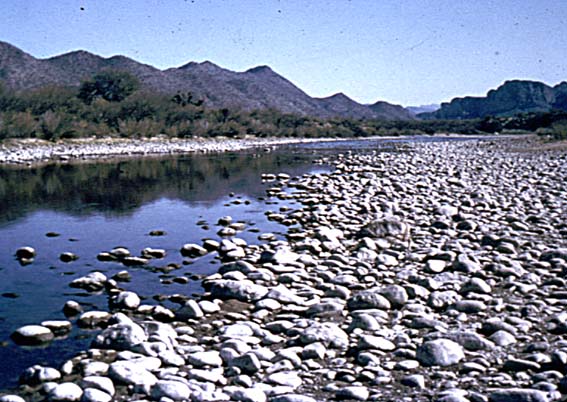 Photo 818: Downstream along left bank from section 2, Salt River below Stewart Mountain Dam, Arizona.